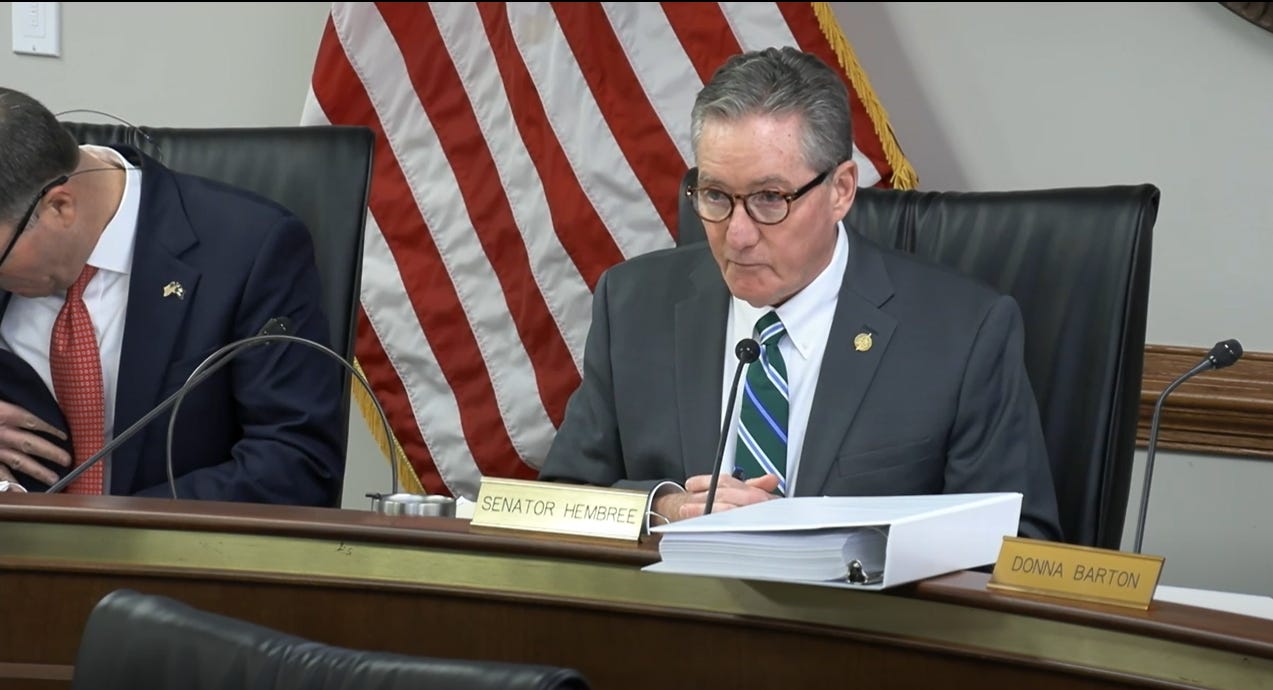 Hembree seemed to brush over Hutto’s points as he moved on to remarks about public school funding per pupil, complaining about what he called the “worn-out narrative that we underfund public schools”. (In fact, the General Assembly has, under definitions set in law, underfunded schools for the better part of two decades.)