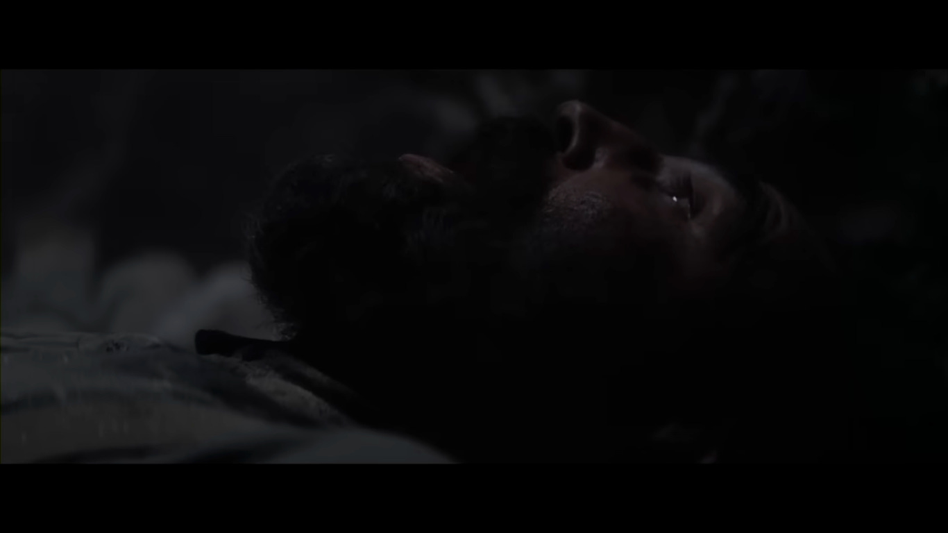 In a previous scene, the dead man has been shown anointing his baby’s head with black oil, which in the context of the film, particularly in the context of Jonny Greenwood’s alien-sounding score— which often recalls the dissonant drones of György Ligeti’s music as used in 2001: A Space Odyssey.
